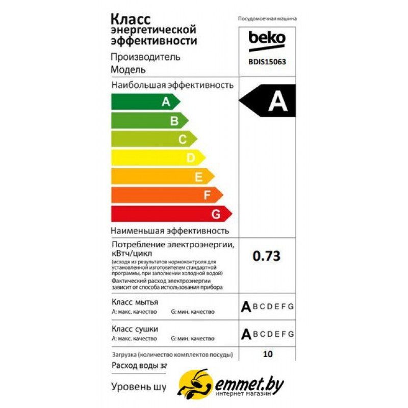 | Класс эффективности мытья | A |