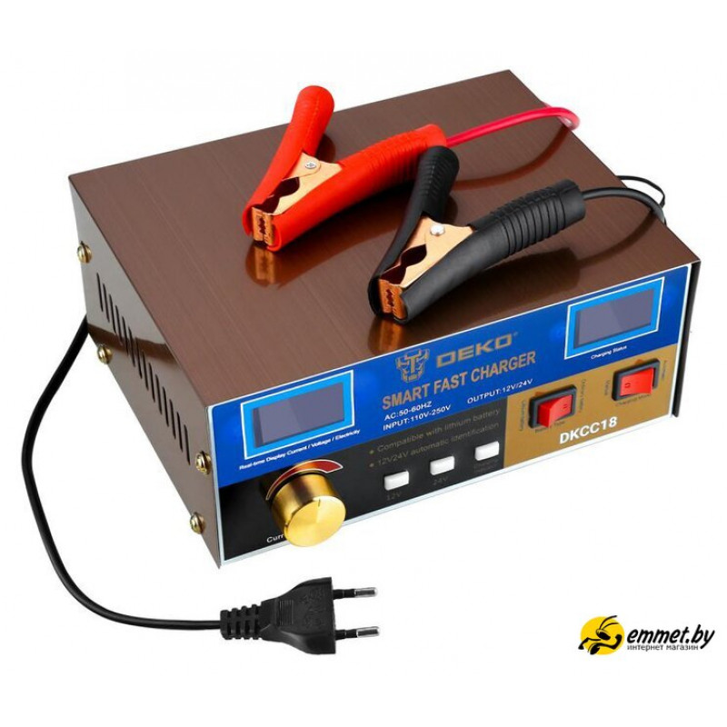 ёмкость заряжаемой батареи: 6–400 А·ч, ток зарядки: 18 А, масса: 1.2 кг